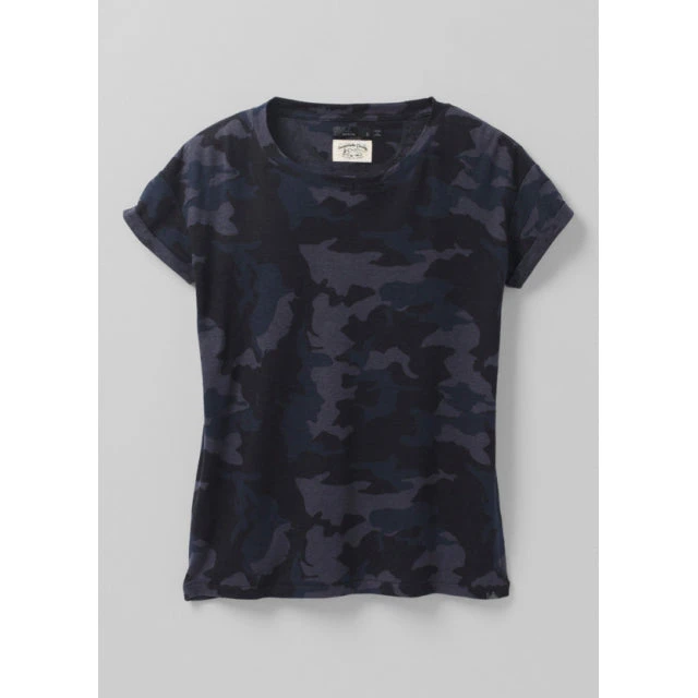 The prAna Cozy Up T-Shirt for women is constructed from a blend of hemp, recycled polyester, and TENCEL™ Lyocell. The standard fitting top features natural odor reducing features, UPF 30+, rolled sleeve cuffs, and a standard fit.